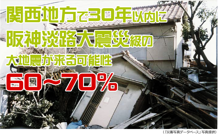 その予測に限らず南海トラフ地震に関して色んな見解がありあすが、共通していえることは30年以内には関西地方に阪神淡路大震災のような大地震が発生する確率が60~70%もあるということです。